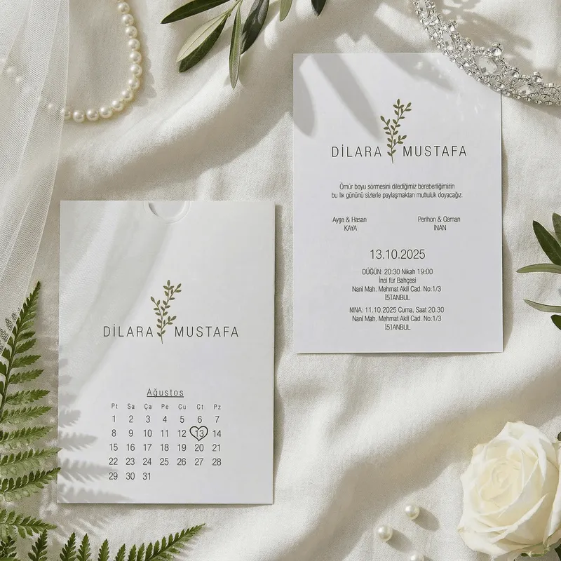 Calendar Wedding Invitation with Botanical Divider