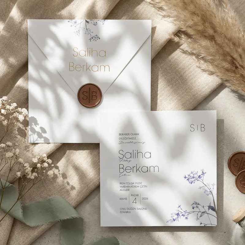 Purple Floral Wedding Invitation with Wax Seal