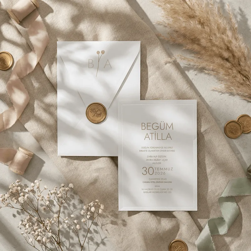 - Le faire-part est conçu comme un ensemble, comprenant l'enveloppe et les accessoires.