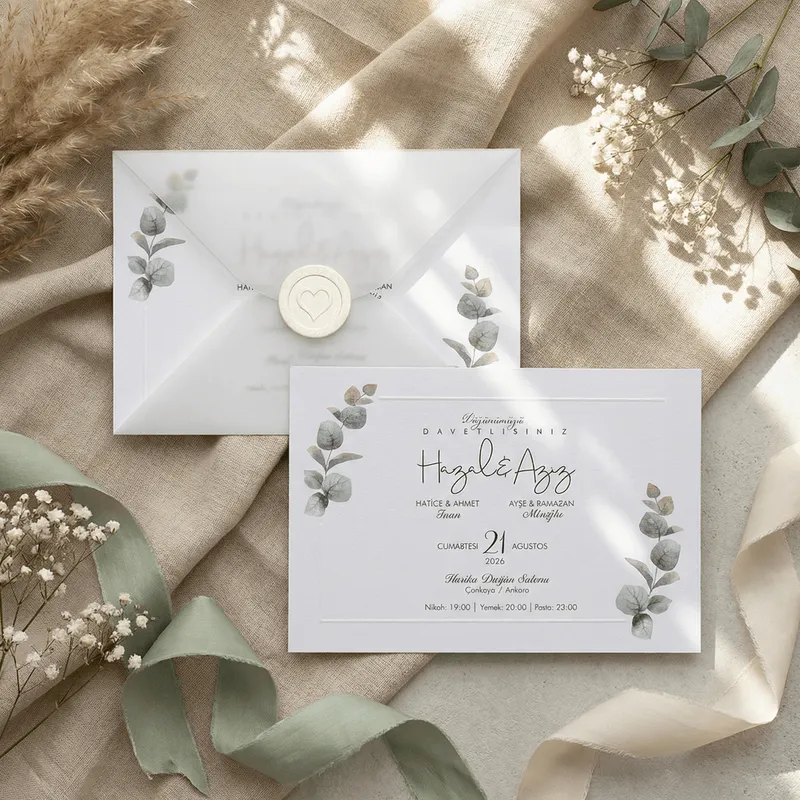 Eucalyptus Wedding Invitation with Seal