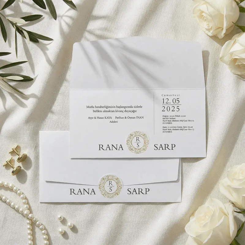 - Le faire-part est conçu comme un ensemble, comprenant l'enveloppe et les accessoires.
