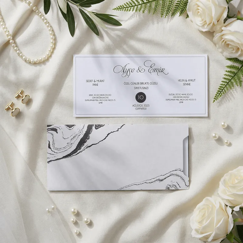 Caractéristiques du produit Marble Envelope Wedding Invitation with Date Badge