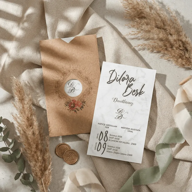 - Le faire-part est conçu comme un ensemble, comprenant l'enveloppe et les accessoires.