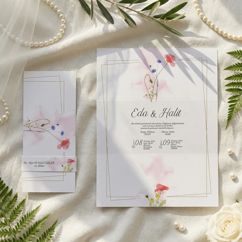 Caractéristiques du produit Watercolor Wash Wedding Invitation with Wildflower Frame